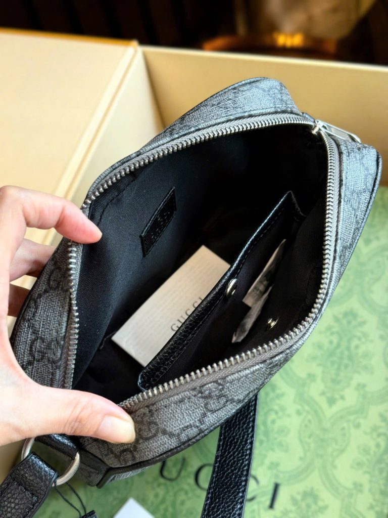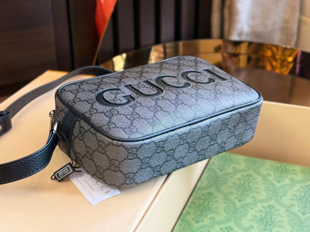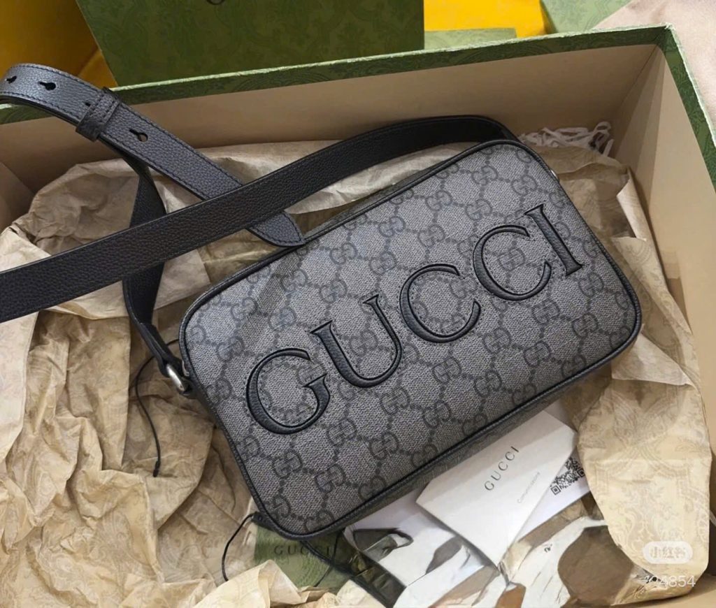 Hình ảnh Chiếc túi cao cấp như trong bức ảnh minh họa (ví dụ: túi đeo chéo Gucci Monogram) cho thấy xu hướng mạnh ngày càng thu thập các thiết kế túi nam đến từ những thương hiệu danh tiếng.